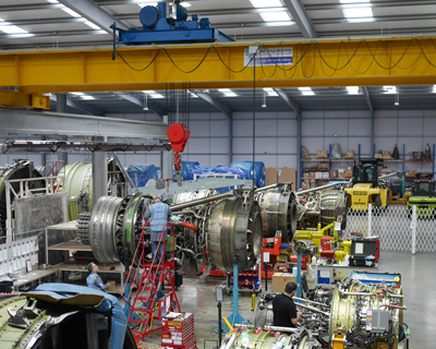 - Bespoke equipment for engine handling including 2 forklift trucks with specialist forks and a 20 tonne overhead crane